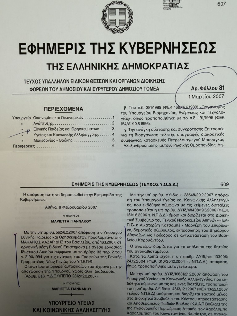 Αυτό αναφέρει το Φύλλο Εφημερίδας της Κυβερνήσεως 81 της 1ης Μαρτίου του 2007.