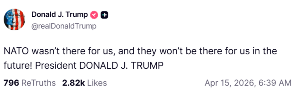 «Το ΝΑΤΟ δεν ήταν εκεί για εμάς και δεν θα είναι εκεί στο μέλλον. Πρόεδρος Τραμπ»