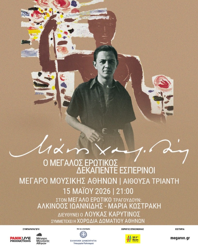 Ο Μεγάλος Ερωτικός και οι Δεκαπέντε Εσπερινοί, δύο από τα εμβληματικά έργα του Μάνου Χατζιδάκι, παρουσιάζονται στο Μέγαρο Μουσικής Αθηνών την Παρασκευή 15 Μαΐου.