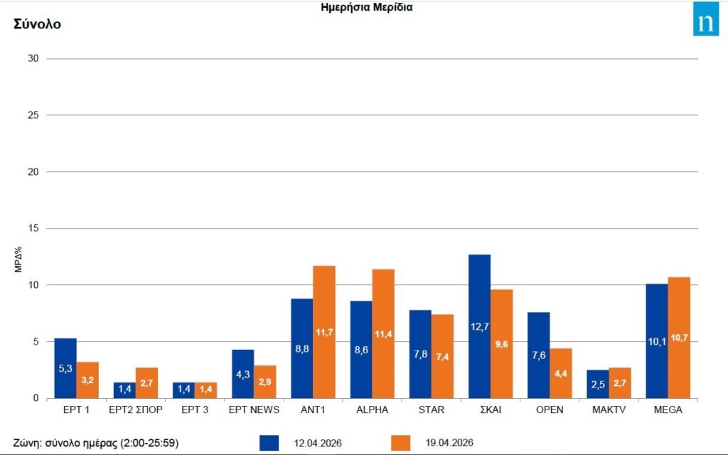 «Κόντυνε» η διαφορά τηλεθέασης ανάμεσα σε Alpha-Mega την Παρασκευή (17/4)