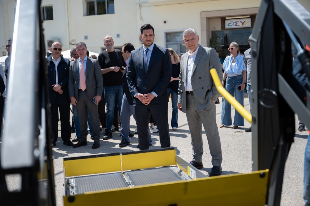 Τα νέα οχήματα ειδικής εξυπηρέτησης για άτομα με αναπηρία της ΟΣΥ παρουσιάστηκαν στο αμαξοστάσιο της εταιρείας, παρουσία του αναπληρωτή υπουργού Υποδομών και Μεταφορών, Κωνσταντίνου Κυρανάκη.