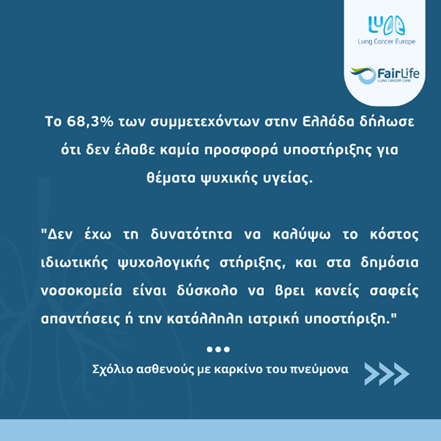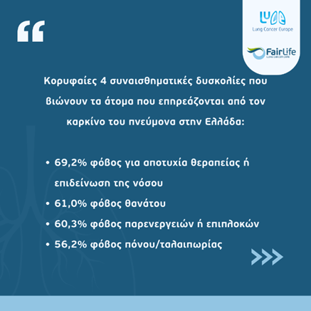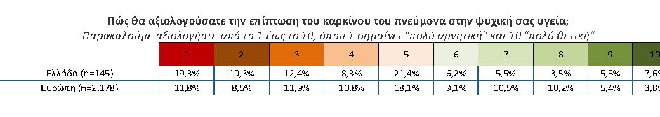Οι Έλληνες ασθενείς με καρκίνο του πνεύμονα βιώνουν από τα υψηλότερα επίπεδα ψυχικής επιβάρυνσης στην Ευρώπη, παράλληλα η πρόσβαση σε υπηρεσίες ψυχικής υγείας παραμένει εξαιρετικά περιορισμένη, αφήνοντας την πλειονότητα τους χωρίς υποστήριξη.