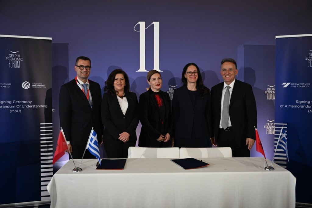 Yπεγράφη σήμερα στους Δελφούς Μνημόνιο Συνεργασίας μεταξύ του Υπερταμείου/Growthfund και του Albanian Investment Corporation (AIC), στο πλαίσιο του Delphi Economic Forum.