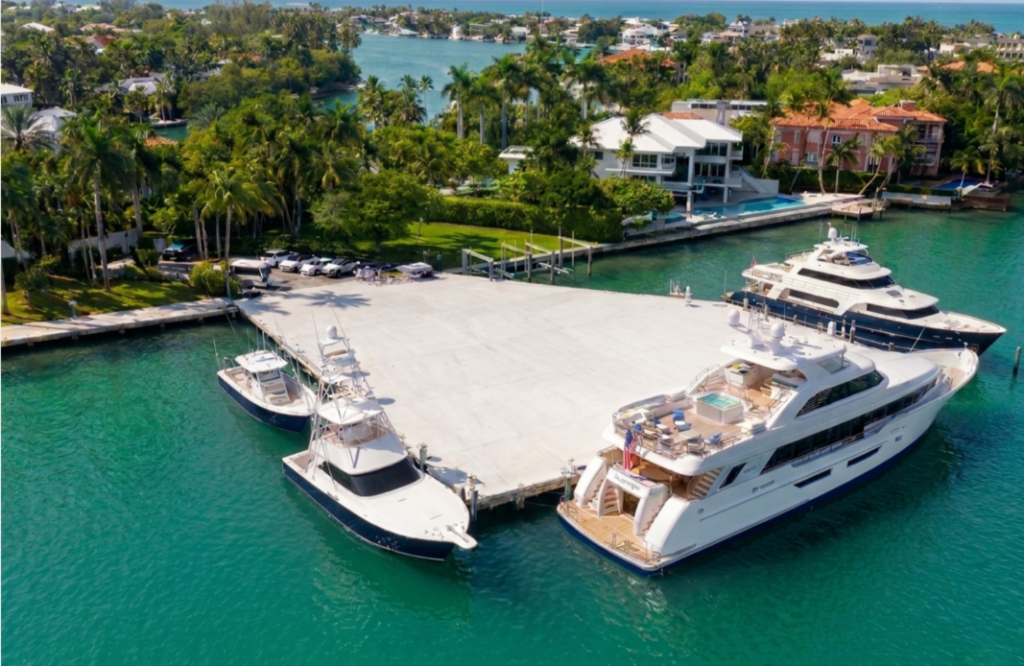 Ανάμεσα στα πιο εντυπωσιακά χαρακτηριστικά του είναι μια μεγάλη τσιμεντένια πλατφόρμα που εκτείνεται μέσα στο νερό και λειτουργεί τόσο ως ελικοδρόμιο όσο και ως χώρος πρόσδεσης σκαφών, με δυνατότητα φιλοξενίας μεγάλων σκαφών.