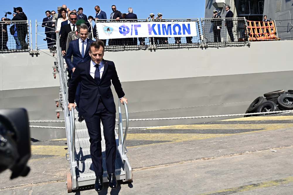 Στα πλαίσια αυτά, το πρωί του Σαββάτου (25/04) οι Κυριάκος Μητσοτάκης και Εμανουέλ Μακρόν επισκέφτηκαν στον Πειραιά τον «Κίμωνα», την πρώτη φρεγάτα νέας γενιάς που παρέλαβε η Ελλάδα από τα γαλλικά ναυπηγεία, συνοδευόμενοι από τους υπουργούς Άμυνας Ελλάδας και Γαλλίας, τους υφυπουργούς Εξωτερικών των δύο χωρών, καθώς και τη στρατιωτική ηγεσία, μεταξύ των οποίων ο Αρχηγός ΓΕΕΘΑ και ο Αρχηγός ΓΕΝ.