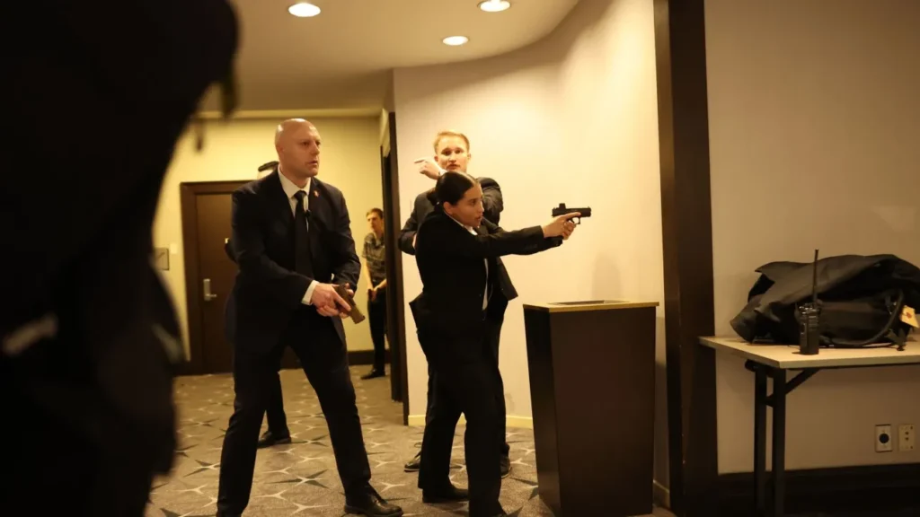 Πράκτορες της Secret Service μπήκαν στην αίθουσα βαριά οπλισμένοι.