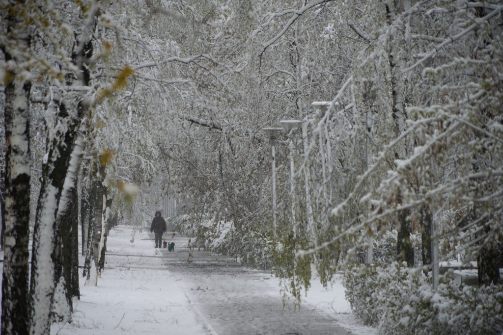 Κάτω από το βάρος του χιονιού, πολλά δένδρα ξεριζώθηκαν, κυρίως στο κέντρο της πόλης, προκαλώντας ζημιές σε αυτοκίνητα και μπλοκάροντας πεζοδρόμια, διαπίστωσαν δημοσιογράφοι του Γαλλικού Πρακτορείου.