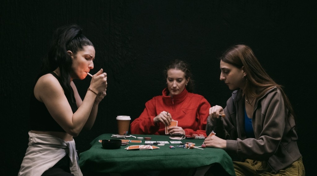 Επί σκηνής, τρεις ηθοποιοί. Τρεις γυναίκες. Τρεις κρατούμενες. Ένα mexican standoff χωρίς πραγματικό νικητή. Ένα τρίγωνο που η σύγκρουση θα περνάει από τον ένα στον άλλο σαν μπαλάκι. Το σκηνικό: ένα στενό κελί φυλακής. Η ατμόσφαιρα είναι ασφυκτική. Τα σώματα των ηθοποιών παλεύουν με τον χώρο. Σε μια καθημερινότητα όπου η κάθε μέρα μοιάζει ίδια με την προηγούμενη, η υπομονή εξαντλείται, οι θεματικές εξαντλούνται, η κούραση της στασιμότητας υπερκαλύπτει την όρεξη για ζωή και η γλώσσα αλλάζει. Ο λόγος γίνεται άμεσος, κοφτός, επιτακτικός, άναρχος και επαναληπτικός. Η φόρμα της παράστασης είναι ρεαλιστική. Δίνουμε μεγάλη έμφαση στις σχέσεις των χαρακτήρων και στη δυναμική μεταξύ τους, μέσα από μια προσέγγιση φυσικής υποκριτικής. Με αυτόν τον τρόπο δημιουργήσαμε μια μαύρη κωμωδία, που ταξιδεύει τον θεατή μέσα από διαδοχικά στάδια συναισθημάτων.