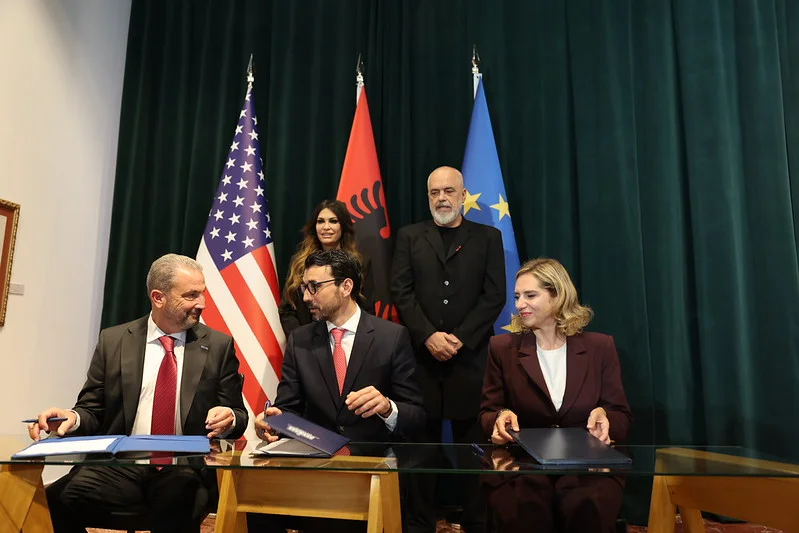 Η Αλβανία, η Venture Global και η Aktor LNG USA υπέγραψαν 20ετή συμφωνία για την προμήθεια υγροποιημένου φυσικού αερίου (LNG) από τις ΗΠΑ, συνολικής αξίας 6 δισ. δολαρίων, ενισχύοντας την ενεργειακή ασφάλεια της Νοτιοανατολικής Ευρώπης.