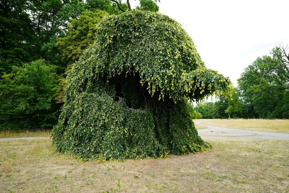 Το δέντρο ανήκει στο είδος της κλαίουσας οξιάς (Fagus sylvatica ‘Pendula’). Το σχήμα του δεν είναι τυχαίο, αλλά αποτέλεσμα της τέχνης του topiary (τοπιαρική). Οι κηπουροί των ανακτόρων εργάζονται ακατάπαυστα χρησιμοποιώντας:
