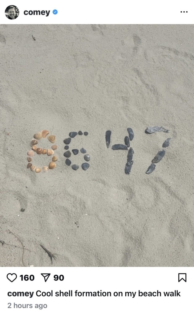 Ο Κόμεϊ, βρέθηκε στο στόχαστρο του Τραμπ, καθώς ανάρτησε μια φωτογραφία από μία παραλία, στην οποία είχε σχηματίσει τον αριθμό «8647», έναν αριθμό που… στοχοποιεί και μπορεί να υποκινεί ακόμη και σε βία κατά του Αμερικανού προέδρου.
