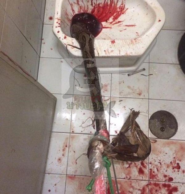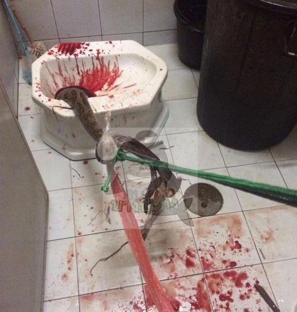 Ο άντρας πήγε στην τουαλέτα του σπιτιού του, έκατσε στην λεκάνη αλλά ξαφνικά ένοιωσε ένα πόνο στα γεννητικά όργανα. Με έντρομος διαπίστωσε πως ένας τεράστιος πύθωνας τον είχε δαγκώσει στα γενετικά όργανα. Ο άντρας άρπαξε αμέσως το φίδι από το κεφάλι και φώναξε για βοήθεια στη γυναίκα του. Το τεσσάρων μέτρων ερπετό δεν άφηνε τον άντρα παρά την πίεση που του ασκούσε ο άντρας με το χέρι του με αποτέλεσμα ο άντρας και η γυναίκα του να αρχίζουν να παλεύουν με το φίδι για να τον αφήσει.