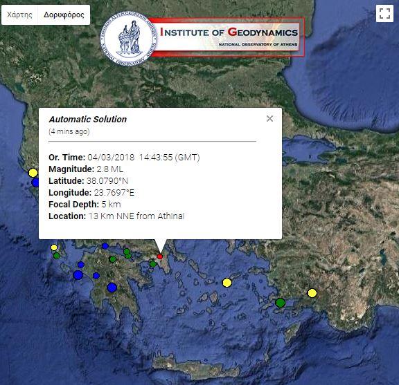 Σύμφωνα με την αυτόματη λύση του Γεωδυναμικού Ινστιτούτου η δόνηση ήταν μεγέθους 2,8 βαθμών της κλίμακας Ρίχτερ.