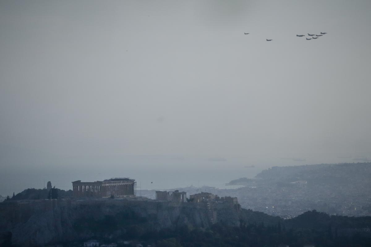Συγκεκριμένα, σχηματισμός ελληνικών αεροσκαφών και αεροσκαφών χωρών που συμμετέχουν στην άσκηση πέταξε πάνω από την Αθήνα από τις 18:20 έως τις 18:30.