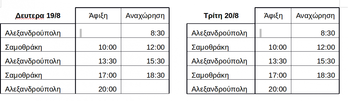 Τα δρομολόγια θα παραμείνουν τα ίδια για τη Δευτέρα 19/8 και την Τρίτη 20/8, όπως και στις προηγούμενες ημέρες.